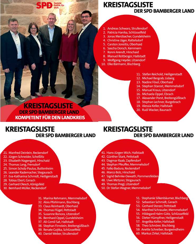 Ein bekanntes Spitzenteam führt unsere Liste an. Die SPD Bamberger Land geht geschlossen mit einem kompetenten Team aus Frauen und Männern in die Kommunalwahl 2026.