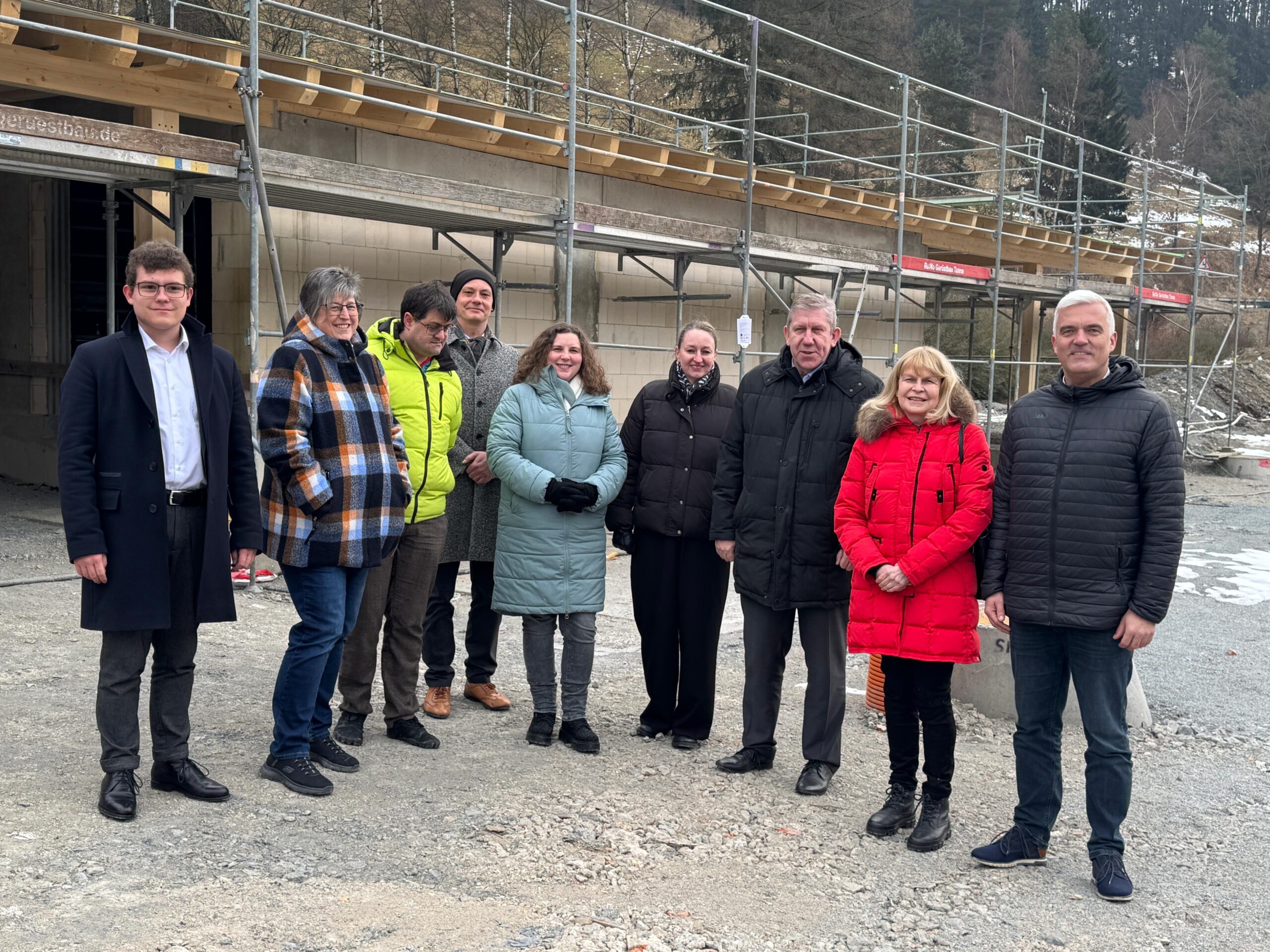 Ein weiterer Halt führte die Delegation zum Freibad Ludwigsstadt, das derzeit umfassend modernisiert wird. Der offizielle Baustart erfolgte im Februar 2025, die Fertigstellung ist für Sommer 2026 geplant. Mit Förderzusagen von Bund und Land in Millionenhöhe entsteht hier ein zukunftsfähiges Freizeitangebot für Bewohner und Gäste. „Solche Investitionen sind mehr als Baumaßnahmen – sie sind ein Zeichen, dass ländliche Regionen Lebensqualität und Attraktivität behalten können. Infrastruktur ist eine Frage der Gerechtigkeit,“ unterstrich Sabine Gross, baupolitische Sprecherin der SPD-Landtagsfraktion, beim gemeinsamen Rundgang.