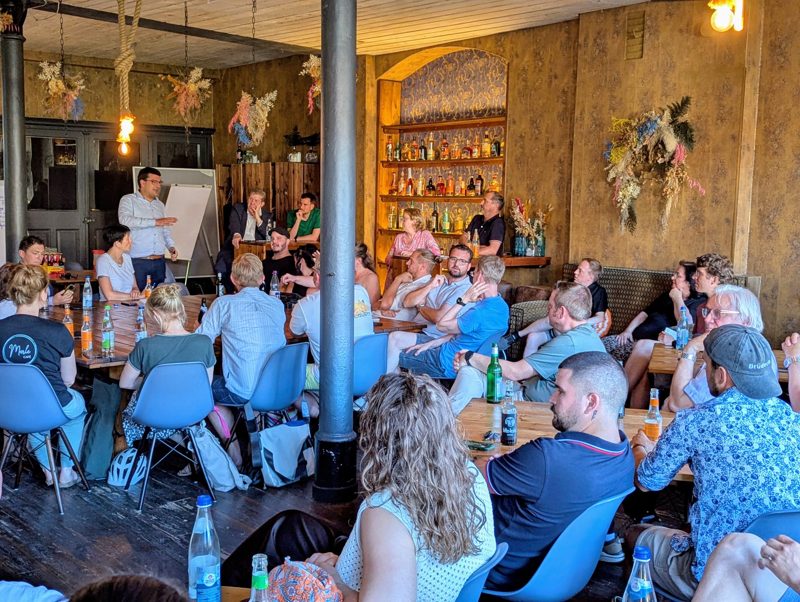 An die 40 Gastronomen aus Bamberg kamen am letzten Juniabend im Kleinstadthafen im Bamberger Sandgebiet zusammen. Das Thema: Nichts weniger als die Zukunft der Gastronomie in Bamberg.
